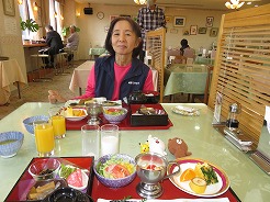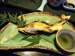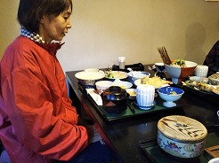 | フェリーに間に合うようにと町歩きから夕食まで設定してくれていて17時に郷土料理の料亭へ・・・ sappyが鯛めし・・・私が芋煮、友達が鮎料理・・・と支払いまで済ませてくれていた・・・感謝感謝・・・ |