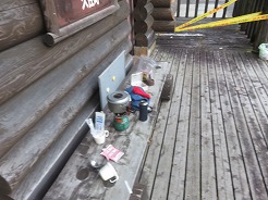 | 下山後雨具の汚れを取りながらコーヒータイム・・・ 14:30今日の宿泊地久住高原コテージまで5km | ||