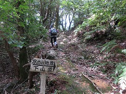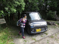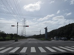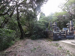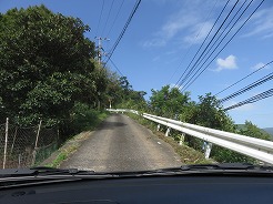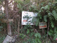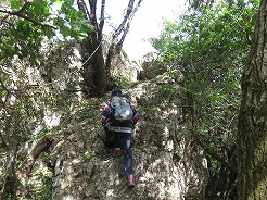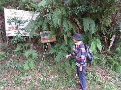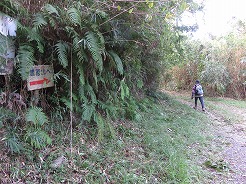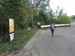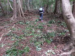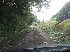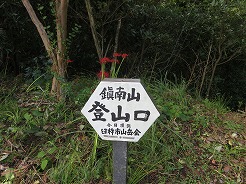 | 台風の余波で時折強い風が吹く中8:20出発・・・10:05鎮南山取り付き着。 いつもの登山者用駐車場の手前200mに大木が横たわり通行止め!下の空き地に駐車です・・・ | ||