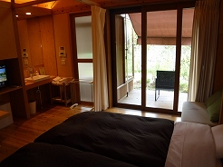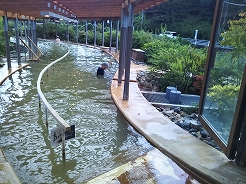 | 温浴法療養複合施設 水着のまま入る運動浴施設と宿泊棟は世界的建築家「坂茂」さん設計のロフト付きロッジ | ||