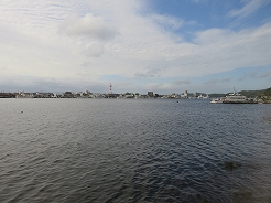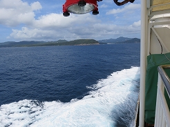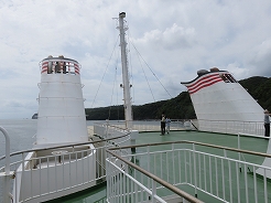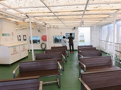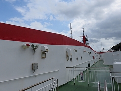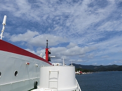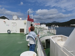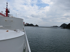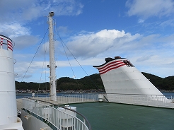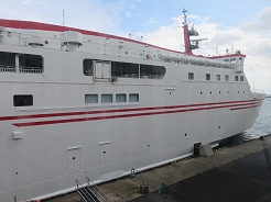 | 9:00出港 11:30着岸 用心に酔い止め薬を飲み、なるべく船室の真ん中付近で寝る・・・これで揺れても船酔いはない・・・ | ||
