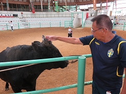 | 島後・西郷港〜12:24玉若酢命神社〜13:08ビーフステーキ丼の昼食〜14:20モーモードーム(牛の角突き)〜14:50隠岐国分寺〜15:25かぶら杉〜15:55白島展望台〜ローソク島遊覧は中止〜16:43水若酢神社 あちらこちらに水木しげるワールド | ||