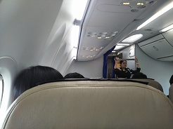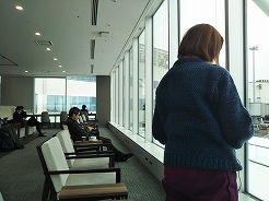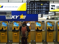 | 高速バス観光港前9:35発・・・相変わらずインバウンドが多く満席。 11:56福岡空港国際線着 無料連絡バスで12:16国内線へ・・・ 今回はスカイマーク、12:20自動発券機で発券完了、荷物は8.8kgと4.5kgで手荷物で・・・ 昼食を済ませ、保安検査場を通過し13:00カードラウンジへ。 |