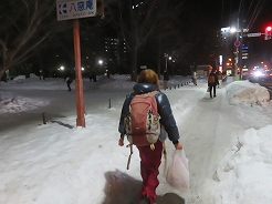 | JAL側出口から右へ行くと中央バスのチケット売り場があるので札幌行きではなく中島公園直通のチケットを購入。14番には10分前に発車する札幌行き各停の乗客の列と中島公園直通の列がある。 17:07発中島公園直通バスに乗車 ほぼ満席 途中で高速に乗るが高速出口で大渋滞。一般道に入っても1車線雪で減らされて渋滞・・・直通バスと言っても札幌までで、市内に入ると札幌駅、大通公園、すすきの、に停車し終点が中島公園。 予定より1時間遅れの19:20中島公園駅着 |