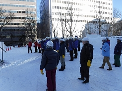 | 6:30朝食 今日の予報は昼から道北では猛吹雪 札幌は最高気温ー3度・・・ 8:00出発 地下鉄中島公園から8:25大通下車 8:40ボランティア詰め所 |