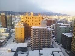 | 14:32円山公園 14:45中島公園 セイコーマートで昼食兼夕食と明日の朝食、昼食を購入し15:10ホテル着 ドリンクバーに立ち寄る。 眺めが良いので雪が降り出す様子を見ながら食事・・・19:00就寝 |