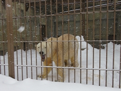 | 円山公園は気温ー7度・・・徒歩500mを歩いて到着。 園内は冬でも見られる様に工夫がしてあった。 熊が冬眠しなくてうろついているのにはビックリ。 半年前に生まれた子象の「タオ」君、一番奥にホッキョクグマ館、アフリカ館ではトラ、ライオン、カバ、キリンなどの大型動物が・・・ 12:30〜14:10 |