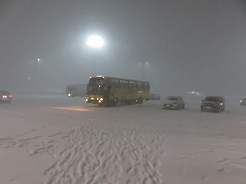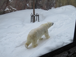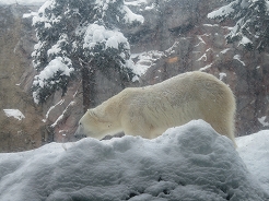 | 札幌から高速に乗るが岩見沢から次のインターまでが吹雪のため通行止め。下道の分岐を左に曲がって15分で再度高速へ・・・11:45旭山動物園着。この分岐を右に曲がり国道を普通は行くがこれだと後でわかったことだが、もう1台同じコースのバスが右に曲がり大渋滞に巻き込まれ、我々が帰路の14:15集合時にもう1台が到着、閉園時間の都合で30分しか滞在できないんだって、運転手さんが言っていた。添乗員さんもドライバーさんを絶賛していた。 この添乗員さんが運転手さん曰く変わり者とかで、薄いジャケットに1枚だけの服装その上にほとんど素手だとか・・・ |