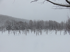 | 凍り付いた上に雪が降り積もって何を見ているのだか・・・ | ||