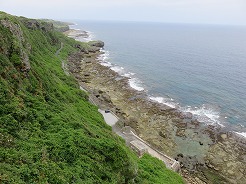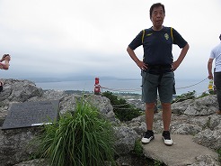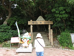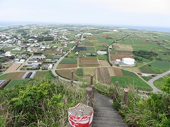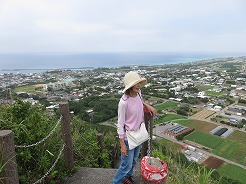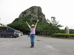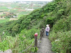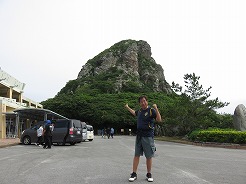 | まずは城山伊江島タッチューへ・・・ 登りなので途中から押しながら9:54南登山口へ・・・ 長い階段を登ると、10:10山頂 360度のパノラマで伊江島の全体像が見える 10:30下山 |