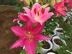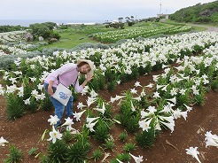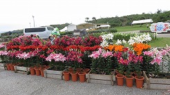 | 10:50着 あと3日でゆり祭りが始まりごった返すのは必至・・・その前イベントの準備中の中ゆったり見られる・・・見事に咲き出した白いゆりや国際色豊かな珍しいユリが咲いて壮観・・・ | ||