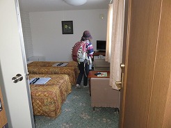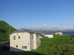 | 観光バスを降りると迎えに来てくれていた 16:55着 きれいな洋室で窓からは利尻山が見える・・・ 明日の登山についての打ち合わせ・・・明日は我々1組だけなので4:30出発でもいいと、下山後の迎えは空港の客の迎えがあるので15時以降で、下山したら連絡を入れると・・・ 携帯トイレの購入、登山届の提出等を済ませる・・・ |