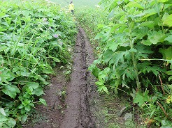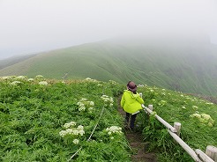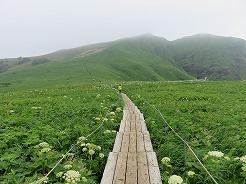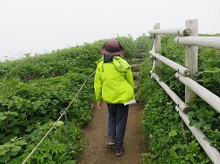 | 登山口につくと昨日とは一変、遠く登山道を歩いている人が見える・・・風も微風に変わって道のぬかるみも昨日よりマシに・・・という事で急ぎ足で昨日と同じコースを歩く・・・ 9:00レンジャーハウス 9:06桃谷展望台、桃岩や猫岩がよく見える 9:30キンバイの谷 ここからレブンウスユキソウの群生が見られた 9:53下地灯台 10:09知床からの入り口着 10:30北のカナリア公園 歩いて11:08フェリーターミナル着 昨日と同じコース1時間短縮 ここまで来たかいがあった |