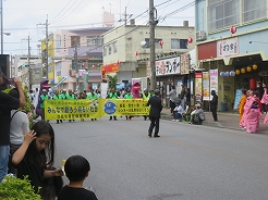 | 荷物を預け名護漁港へ・・・11:00からマグロの解体ショーが開かれるので300m程の列ができていた・・・11:20解体ショーは終わってアンケートに記入するとマグロの切り身が食べられた。思ったよりたくさん入っていてびっくり・・・21世紀の森ビーチ付近を散策 12:20ホテルに戻り12:40荷物を持ってパレードの出発地点へ | ||