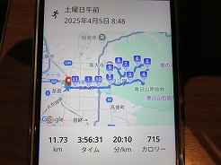 | 8:45スタート 9:05鳥居 9:31春日山遊歩道入り口 10:18山頂 10:26三重目 10:33料金ゲート 10:39二重目 10:52一重目 11:20北ゲート 11:28三月堂 11:33二月堂 11:48東大寺 12:16鳥居 12:35JR奈良ゴール | ||