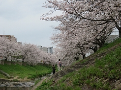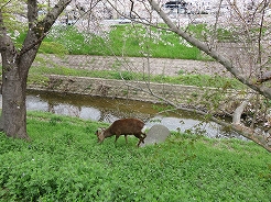 | 奈良市中心部を流れる佐保川沿いに約5キロメートル続く桜並木は、古都を代表する花見スポット。法蓮町から大和郡山市境あたりまで、約1000本のソメイヨシノが川の両岸を彩る。 9:47スタート 途中はぐれた鹿が住宅地の中や河川敷にいたりした。 10:35ゴール |