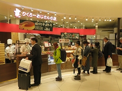 | 16:50保安検査通過 通過後すぐ見える長蛇の列が「りくろーおじさんのチーズケーキ」・・・あまりの長さに間に合うかドキドキしながら何とかGETする。 | ||