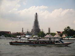 | 10:22ワットポーから歩いて3分で船着き場へ・・・チャオプラヤー川対岸、クメール風の仏塔が印象的なワット・アルンへ渡船でわたる、料金は片道3B約十円 | |||