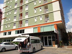 | 15:50チムさんとBIG−Cで待ち合わせ。ミミさんが建設中の看護介護学校とケアハウスを見学に・・・5階建ての建物は8割完成、先行して学校が来年1月開講、看護師、介護師を養成しながらケアハウスが完成。 日本人向けに1ヶ月3〜4万Bで1対1の看護をしてくれる。もちろん衣食住完備・・・他に看護が必要ではない人達用に低料金で訪問介護付きのゲストハウス的な住居もあるそう・・・そんな完成間近の事業に日本人ロングステイヤーとしての要望、介護の実態を話し合う。 |
