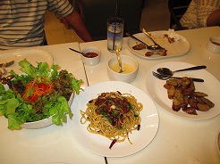| BIG−Cのフードコートで昼食。 パッタイ、豚肉飯、ミートボール入り麺 | |||