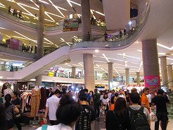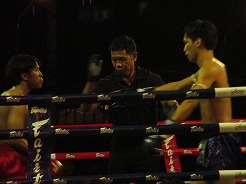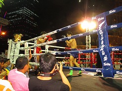 | 19:50チムさん、ミミさんとお別れしタクシーでホテル近くのナイトマーケットへ・・・バンコクはメータータクシーが初乗り35Bと移動には安くて便利、30分80Bほどで到着。 大型商業施設が建ち並ぶ一画に大勢の人だかりが見えた。ムエタイの試合が行われ皆異様に興奮、熱狂していた。リング最前列で見る生の試合は迫力満点。裏にあるナイトマーケットは新感覚の商品ばかり、初めて見るような料理や雑貨がいっぱい・・・BIG-Cでマンゴー45Bを購入、22:30ホテルへ戻る。 |