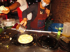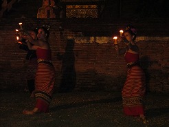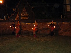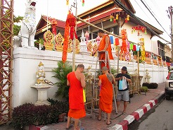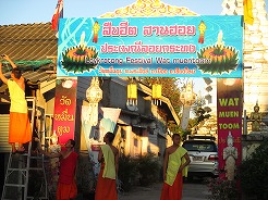 | ロイクラトン前夜祭の真っ最中で旧市街はお坊さんが飾り付け中。お寺の中では読教の儀式が行われている。日が沈むとロウソクの明かりの中での読教や民族舞踊などが行われていた。今回初めてのマッサージ1時間200Bで・・・ | ||