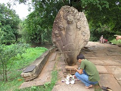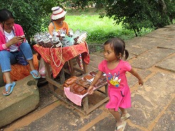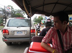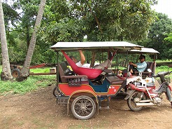 | 7:30朝食はフレンチトースト。このゲストハウスの専属日本語ガイドとツクツクなので8時集合も合わせてくれる。 今日のツアーは世界遺産ではないのでガイドさんも私服で・・・6月からこのホテルのオーナーになった日本人女性が頼もしい、ツアーに関するブッキングからすべて対応してくれるので個人旅行にはもってこい・・・ |