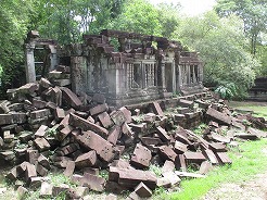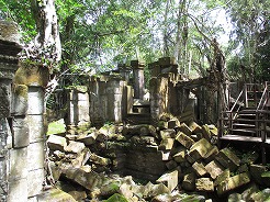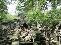 | 10:00現在も修復されないまま森の中に眠る巨大寺院「ベンメリア」。アンコール・ワットと類似点が多く「東のアンコール」と呼ばれている。深い森の中に埋もれた遺跡は発見当時のままの姿で残されている。 | ||