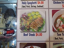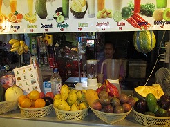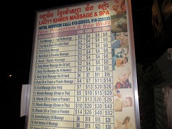 | 18:00最後の夜はナイトマーケットへ・・・ マーケット内で夕食、ビーフステーキ4ドル、ヌードル3ドル、緑茶1ドル フレッシュジュースはどれも1ドル。仕上げはクメールマッサージを2時間(8ドル) |