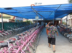 | 8:201階のロビーでセルフで朝食。9:20ホテルを出てレンタサイクルを借りる1日30B。 | ||