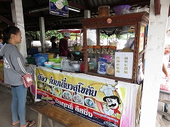 | 道端ではクラトンを売るお店がいっぱい。手の込んだ大きめ、20B(70円)のクラトンを購入する。 | ||