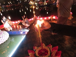 | ロイクラトンの発祥の地はここスコータイ。ロイとは川に流す、クラトンとは灯篭・・・ スコータイ王朝時代日々受ける恩恵に感謝し王妃が川にバナナの葉で作った灯篭を流したことが起源で全国へ広まっていったと・・・ |