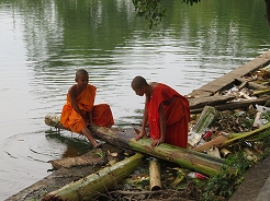 | 8:00セルフで朝食を食べ、祭りの後の歴史公園周りを散策。もう観光バスが5、6台止まりレンタル自転車に大はしゃぎの西洋人が大勢・・・途中学生の集団と出会う、おそらく公園内の清掃ボランティア?サイクリング道を見つける | ||