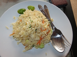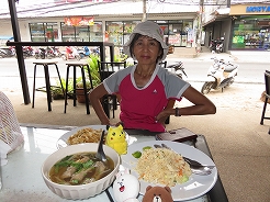 | ビーチから離れた場所のレストランで夕食・・・ フライドライス、パッタイ、麺3品で200Bとお手頃で美味しかった・・・ 道向かいの7イレブンで水、お菓子、朝食のパンを購入・・・ |