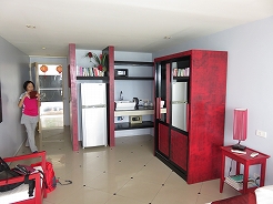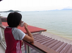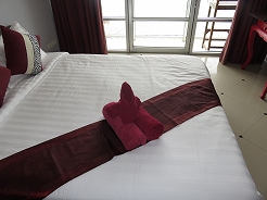 | ビーチフロントのホテル2階から目の前はビーチの絶好のロケーション・・・ 12時にもかかわらずチェックインできた。 |