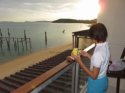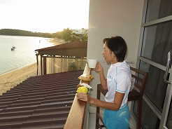 | 6:00起床 7:30ピックアップで8:10ナトン港着 受付でホテル名を告げ1950B@2を支払い乗船 | ||
