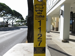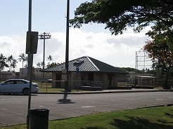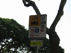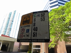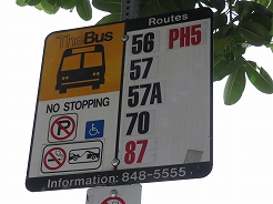 | 山側のバス停まで歩き57番でカイルアへ・・・ 7:40発、8:20カイルアショッピングセンター下車、ショッピングセンター内のトイレが使えないので横にあるグランドの公衆トイレを使用。 |