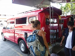 | バスターミナルから赤色ソンテウで城壁まで30B 今まで運賃を交渉していたが車体に1人30Bと書かれていた。これは市内を公共バスが走り出した影響と思われる・・・ |