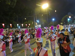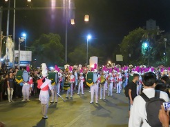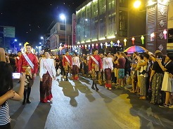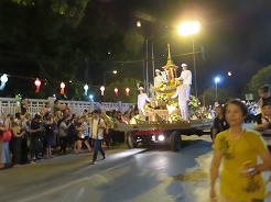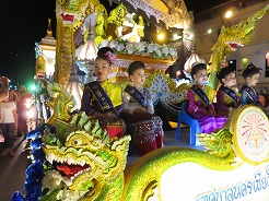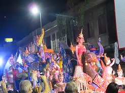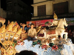 | お祭りのメインは美しい山車(フロート)のパレードで、美しく飾られたクラトンを模したフロートが何十台も続く・・・ただ無秩序に撮影者が入り込みパレードと人波が判別できない有様に・・・ | ||