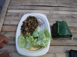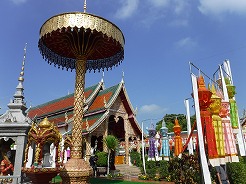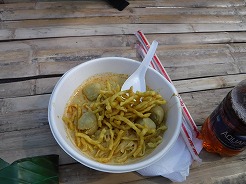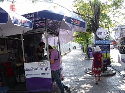 | ピン川沿いにある白色ミニバン停留所からラムプーン行きに乗る1人25B。 30km、約30分で到着する。 |