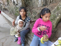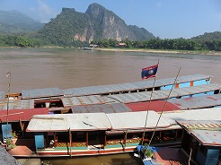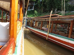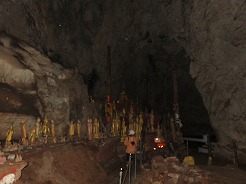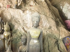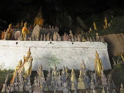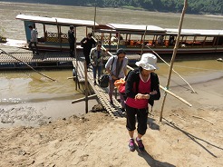 | 8:30長く大きなボートに9名で出発 ゆっくりのスピードだが風が冷たく寒い・・・シートに毛布がかかっていたので全身羽織ったら暖かく快適、船内はコーヒ、お茶、バナナがありトイレも完備なので安心・・・なクルーズができた。陽が上がり10:30パークウー洞窟へ・・・11:40サンハイ村・・・13:10下船 | ||