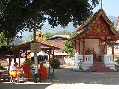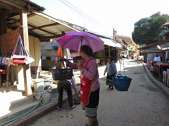 | 敬虔な仏教国であるラオスでは、黄色い袈裟に身を包んだお坊さんが一列になって歩き、沿道に並ぶ人々から一握りのご飯を受け取る托鉢が毎日行われる。 | ||