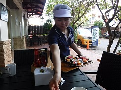| 7:30ホテルのテラスで朝食 | ||