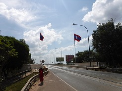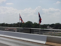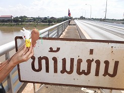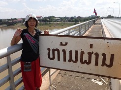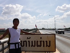 | 11:20メコン川にかかるラオスとタイを繋ぐ橋の中央・との国境まで歩く・・・ | ||