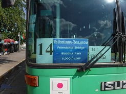 | セントラルバスターミナル(タイや中国ベトナムの国際線もある)から道を挟んだ200m先に市内バス乗り場がある。友好橋まで8000K | ||