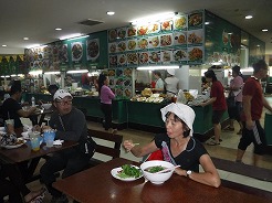 | 大型のショッピングセンター 3階のフードコートはクーポン式 箸やスプーンを自分で消毒 | ||