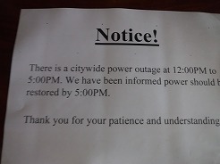| 14:30ホテルに戻ると17時まで市内工事中で停電で断水・・・ | ||