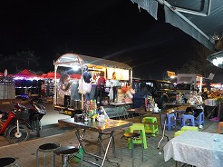 | 17:30になっても復旧しなかったのでメコン川へ・・・ 川べりのステージで19時から影絵劇があるとか・・・18:30リハーサルで演奏が始まり19:00から影絵劇が始まった・・・ナイトマーケットの屋台で夕食を食べ20:30ホテルへ・・・ |