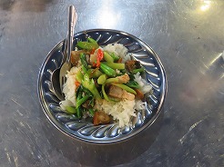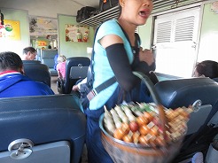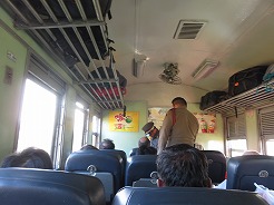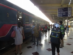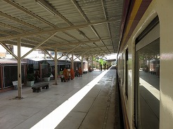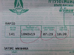 | class2はリクライニングシート、前の3は普通車・・・前方へ行くと寝台車になっていた。この列車はバンコク昨夜10時30分頃発・・・全車エアコンではなくファンだったので窓から入ってくる風が心地よい・・・ウボンを出るとすぐに売り子がいろいろな食材を売りに来る・・・列車ほぼ定刻通りの運行。快適!7:29発で10時20分ウボン到着。 | ||