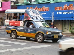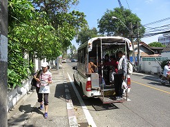 | 市内にはいろんな番号のソンテウが走っている。1回10Bなので乗りこなせれば色んなところに安く行ける・・・ | ||